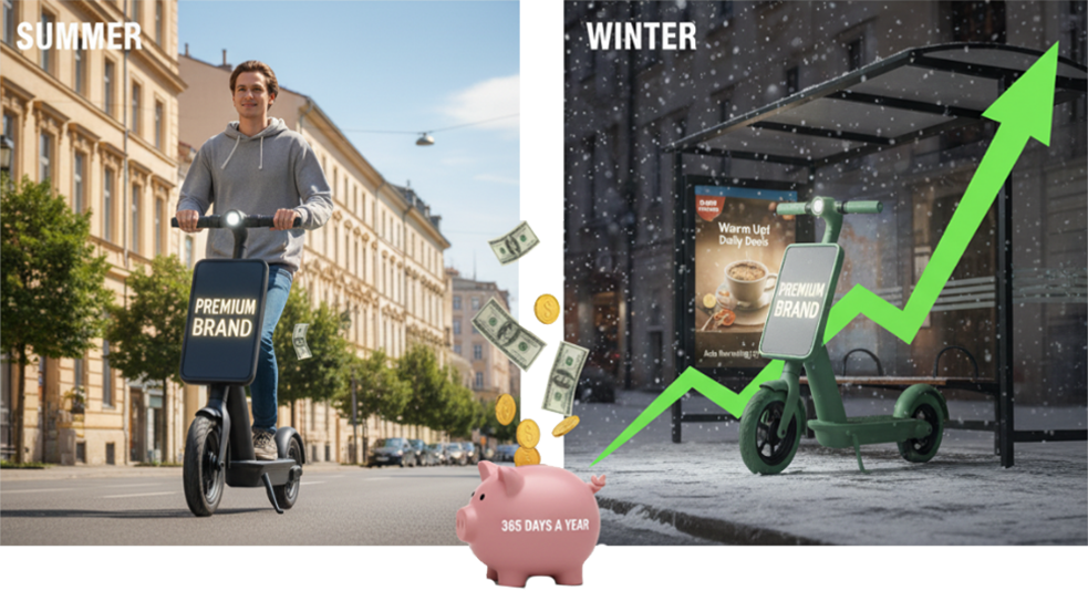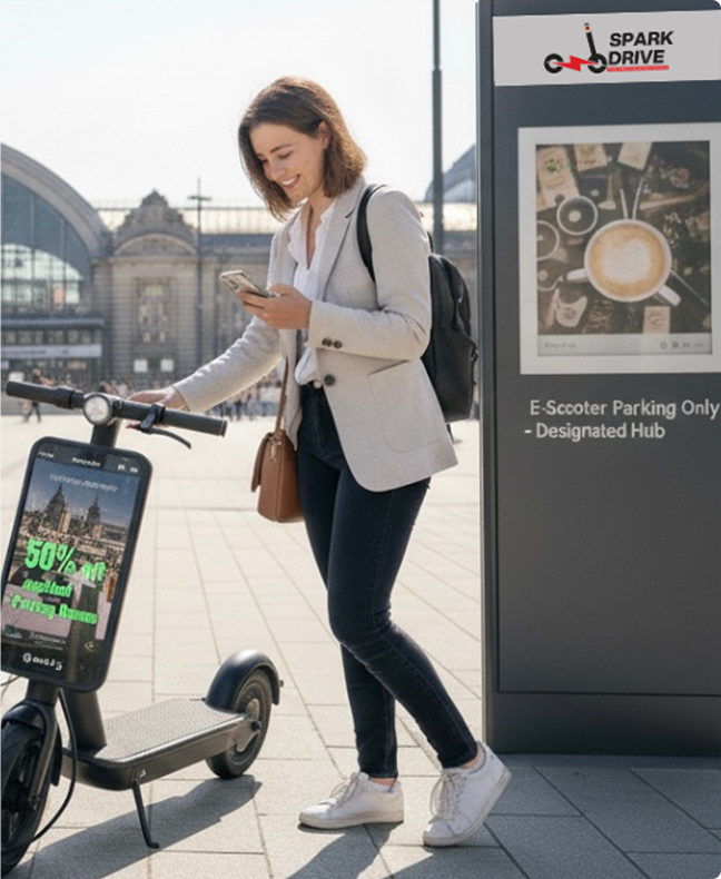 Spark Drive is a next-generation Micro-mobility platform. We deploy e-scooters equipped with integrated LED advertisement panels, generating dual revenue from both rider usage and advertising. By combining micro-mobility with digital out-of-home ads, we build a scalable, profitable fleet that thrives in all seasons.